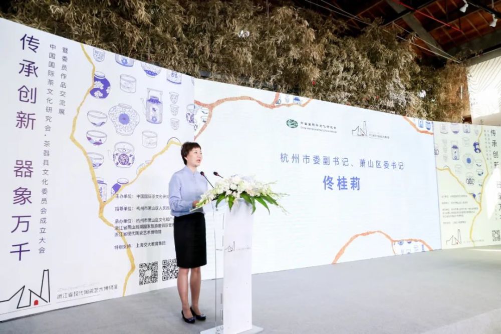 杭州市委副书记兼萧山区委书记佟桂莉在致辞中表示:“茶以器载,器以茶名,向来有器为茶之父的美誉。中国国际茶文化研究会茶器具文化委员会集聚了一大批茶文化和茶器具文化研究领域的专家学者、艺术家、收藏家和企业家,相信通过这个平台,将进一步弘扬茶文化和茶器具文化,促进茶产业、茶器具产业和文创产业、文旅产业的繁荣发展。”