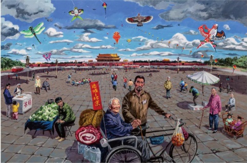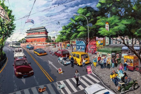 此次展览作品,是斌哥对儿时北京的“念想“,画面里有推着冰棍车的二姐,提着岛笼的二姐夫,隔壁街坊刘大妈,还有发小乐队那帮哥们儿……斌哥曾在90年代游走香港、广州、深圳南方城市,在20多年的浪子生涯,或许最让他放不下的是对家乡北京的眷恋,看见京牌小车,都像见到亲人一般。